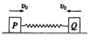 A.如果地面水平、坚硬光滑,则小车将向右运动. B.如果地面水平、坚硬光滑,则小车将在原地附近做往复运动. C.如果地面阻力较大,则小车有可能断断续续地向右运动. D.敲打时,铁锤跟小车间的相互作用力是内力,小车不可能发生运动. 8、如图所示,P物体与 一个连着弹簧的Q物体正碰,碰撞后P物体静止,Q物体以P物体碰撞前速度v离开,已知P与Q质量相等,弹簧质量忽略不计,那么当弹簧被压缩至最短时,下列的结论中正确的应是 ( )
